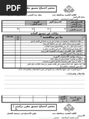 نموذج محضر اجتماع تنسيق مقرر Doc Document